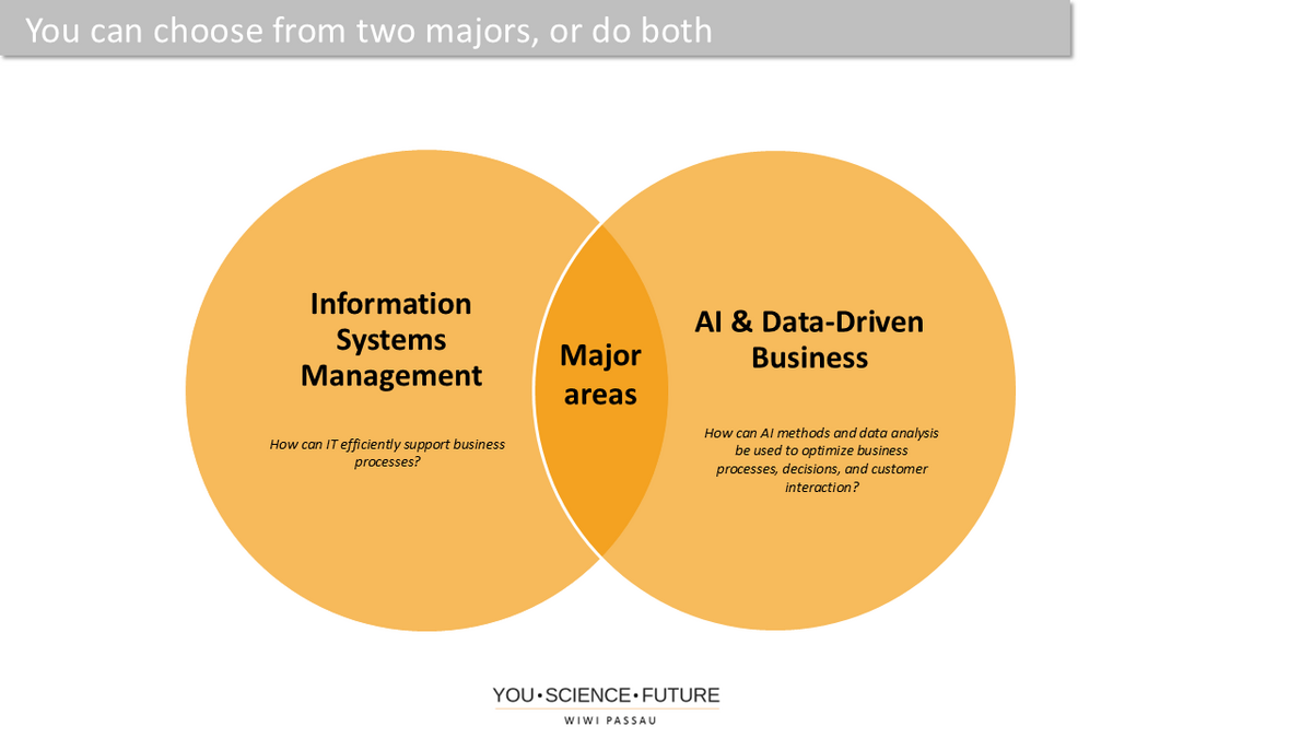 Die Schwerpunkte „Data-Driven Business“ und „Information Systems Development and Management“ aus dem Bachelor können im Master in den Schwerpunkten „AI & Data-Driven Business“ sowie „Information Systems Management“ konsequent fortgeführt und weiter vertieft werden. Die so erworbene tiefe Profilierung bereitet exzellent für attraktive Jobs in der Praxis, aber auch für eine weiterführende Promotion vor.